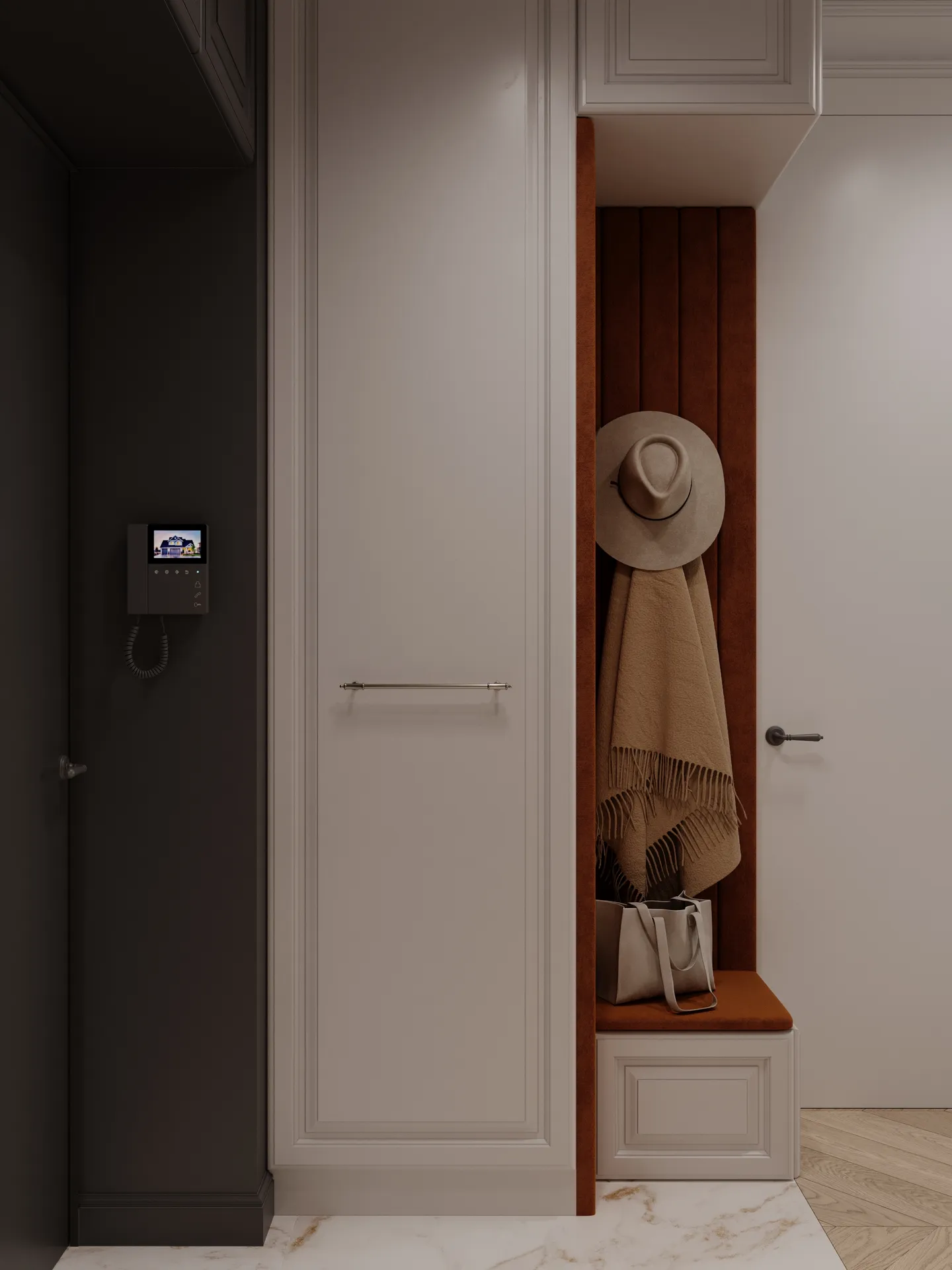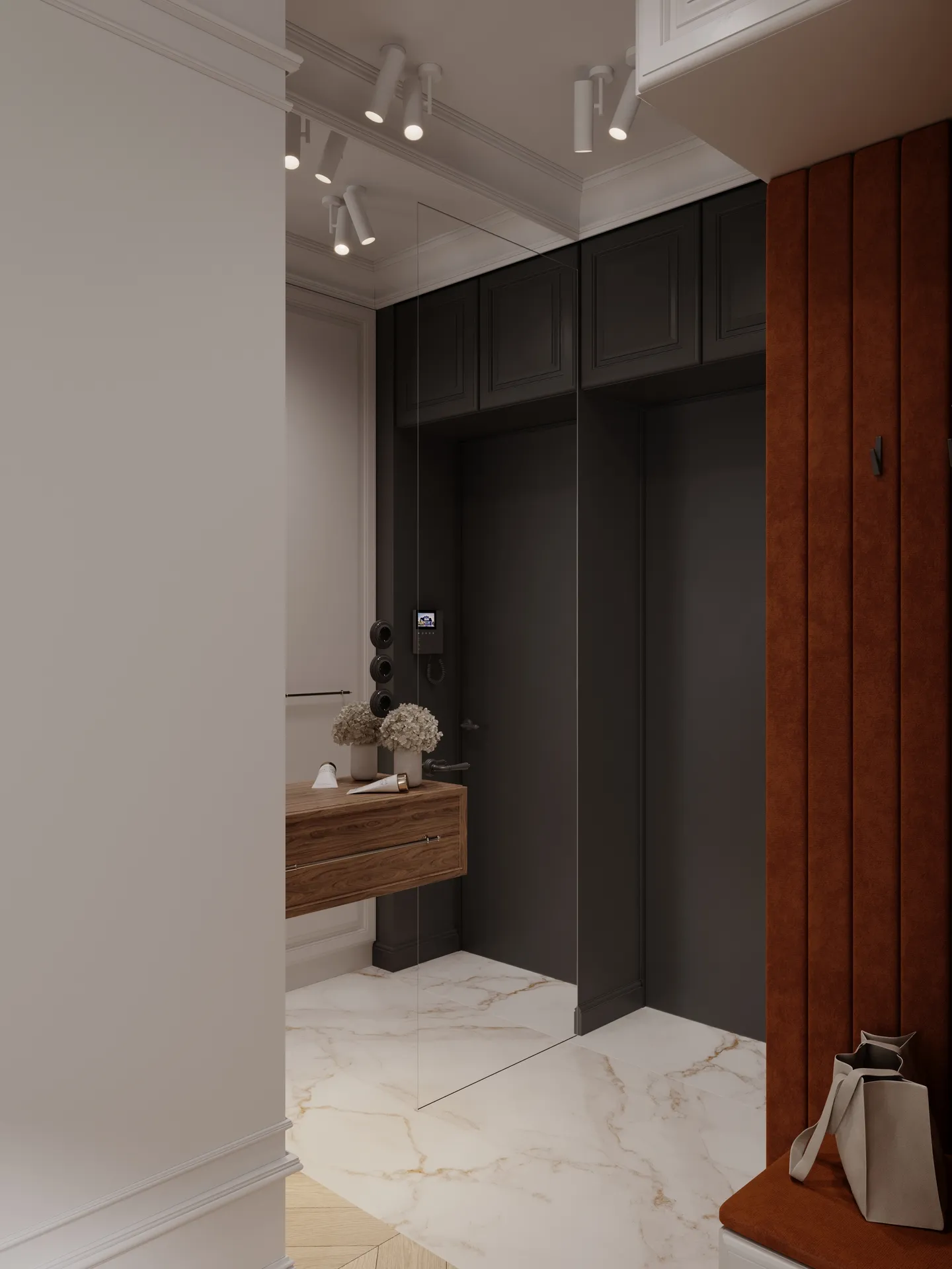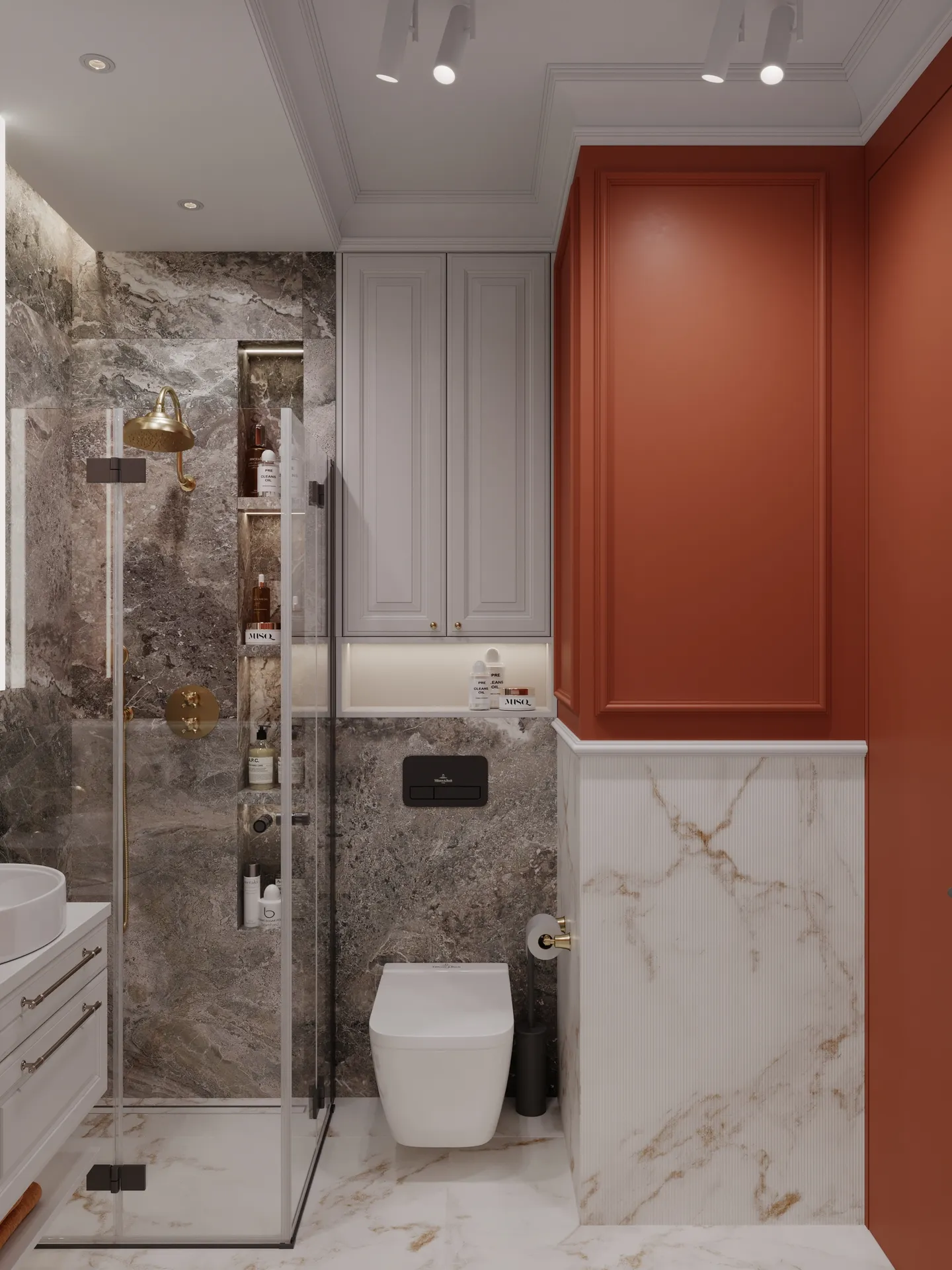 Całość dopełniają eleganckie płytki, drewniane podłogi i detale, które łączą historię z nowoczesnością.