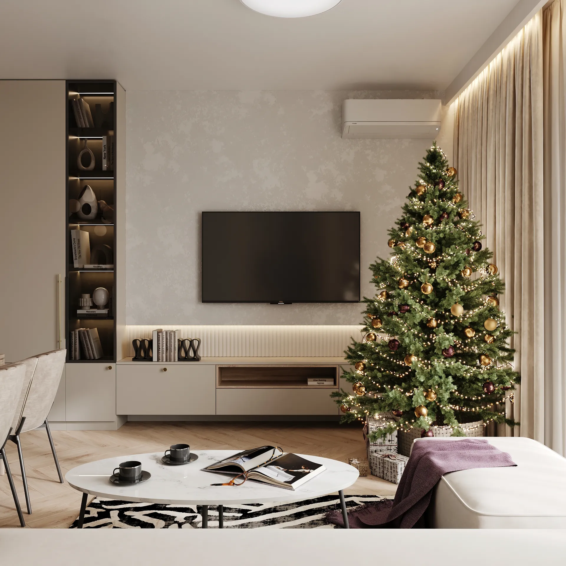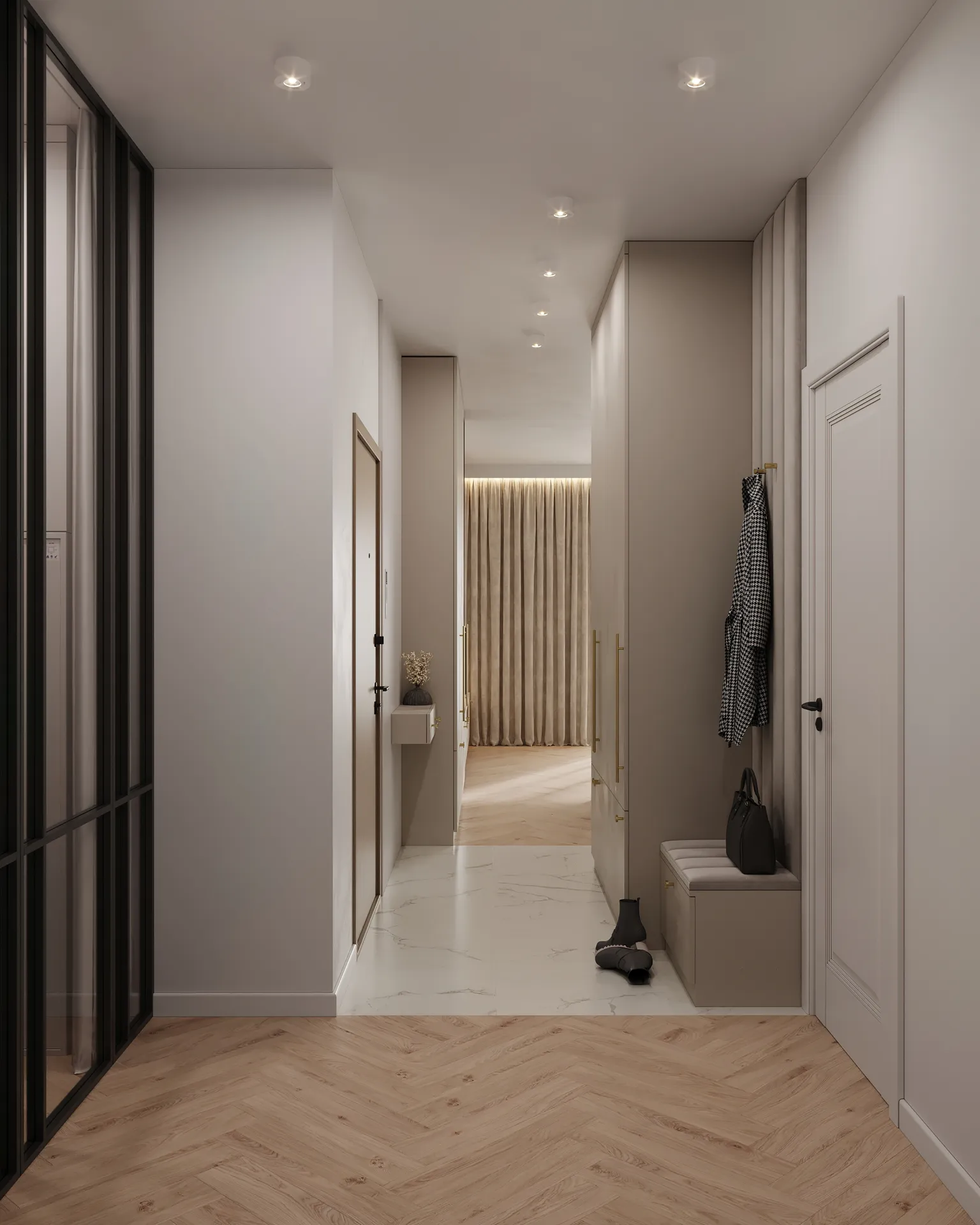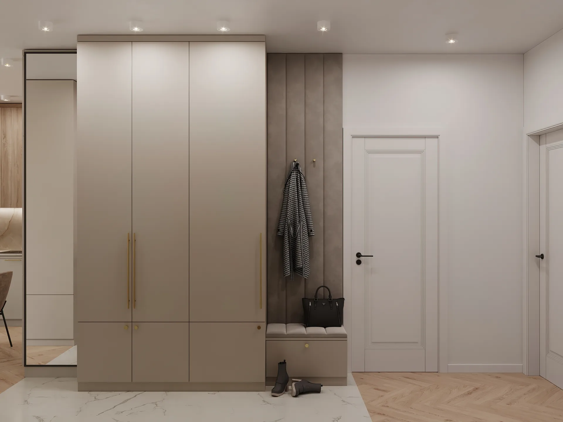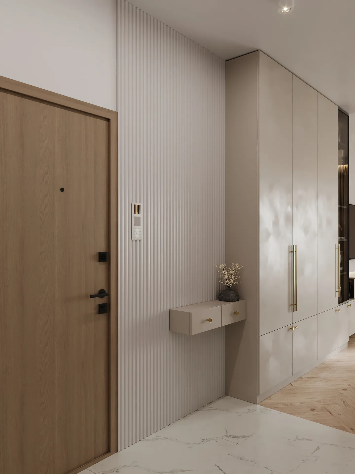 Projekt wnętrza 3-pokojowego mieszkania w Warszawie to przykład harmonijnego połączenia nowoczesnej funkcjonalności i domowego ciepła. Przestrzeń została zaprojektowana dla 3-osobowej rodziny, z myślą o wygodzie i estetyce użytkowania na co dzień.