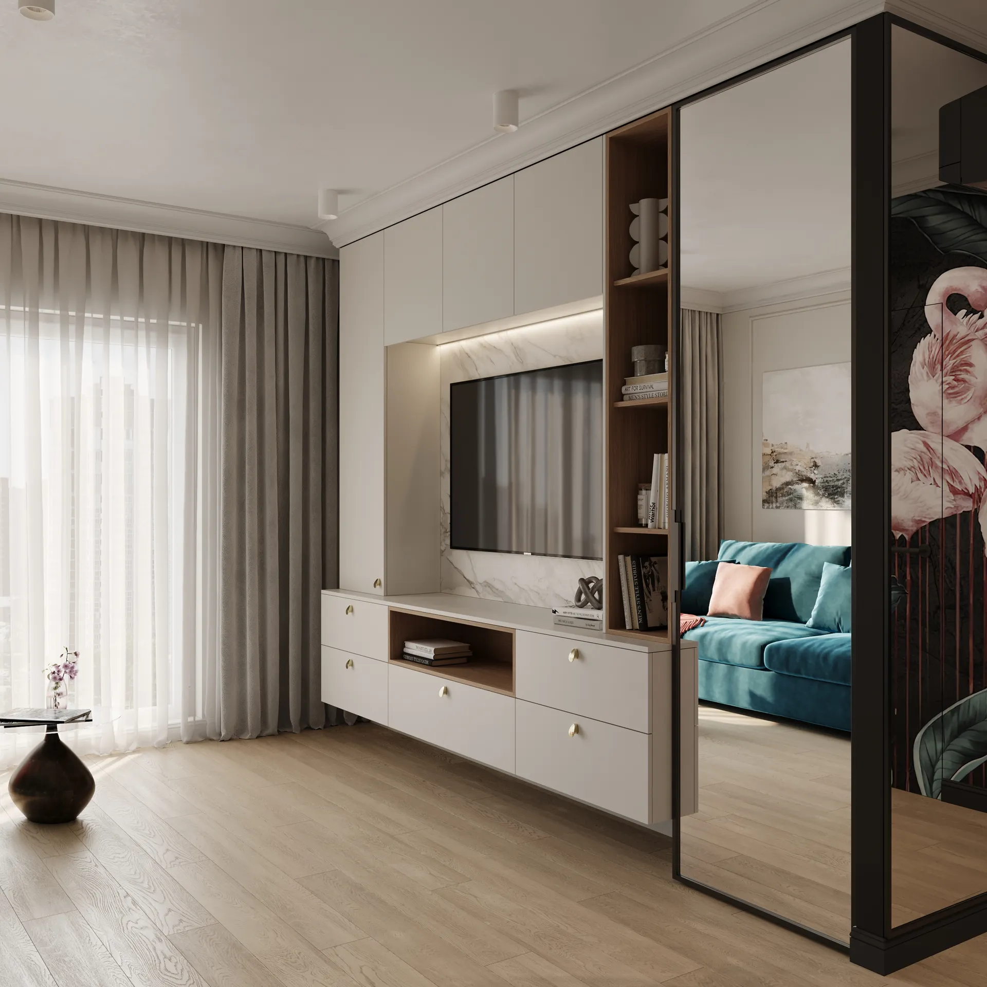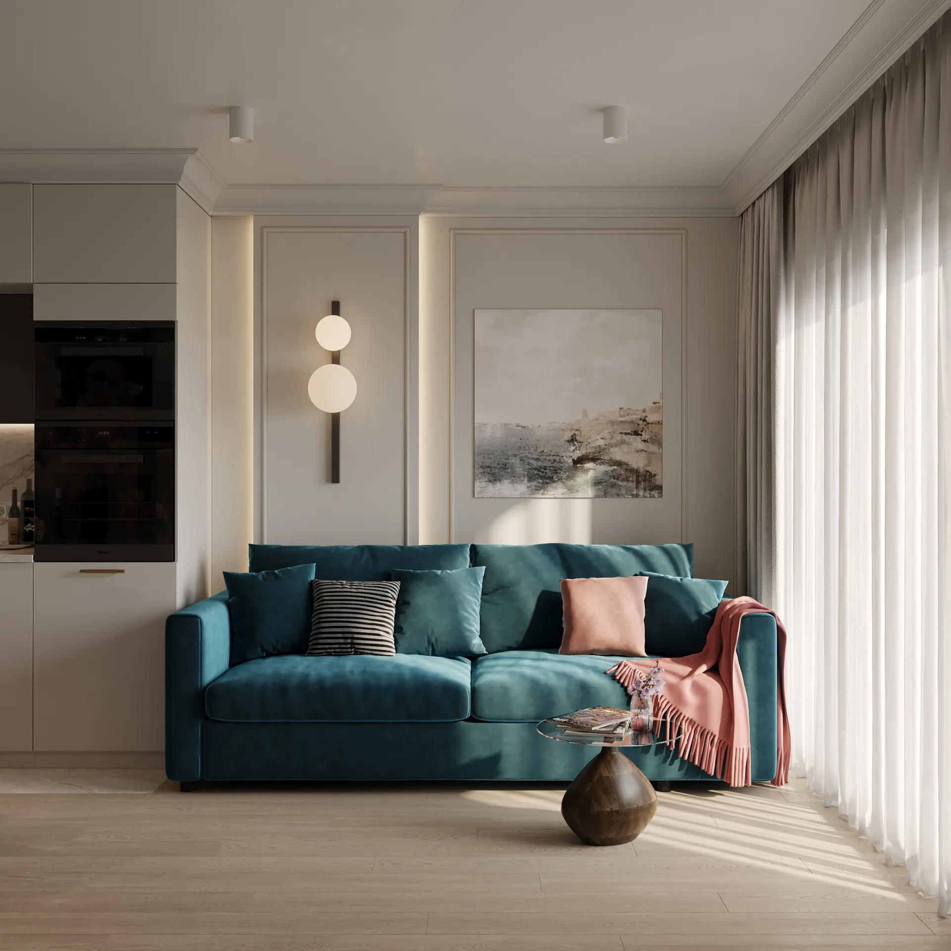 Projekt wnętrza mieszkania 37m2 w Warszawie to przykład, jak nawet na niewielkiej powierzchni można stworzyć komfortową, elegancką i funkcjonalną przestrzeń dla dwóch osób. Wnętrze zostało zaprojektowane w stylu modern classic – połączeniu klasyki i nowoczesności, które razem tworzą ponadczasowy, harmonijny klimat.