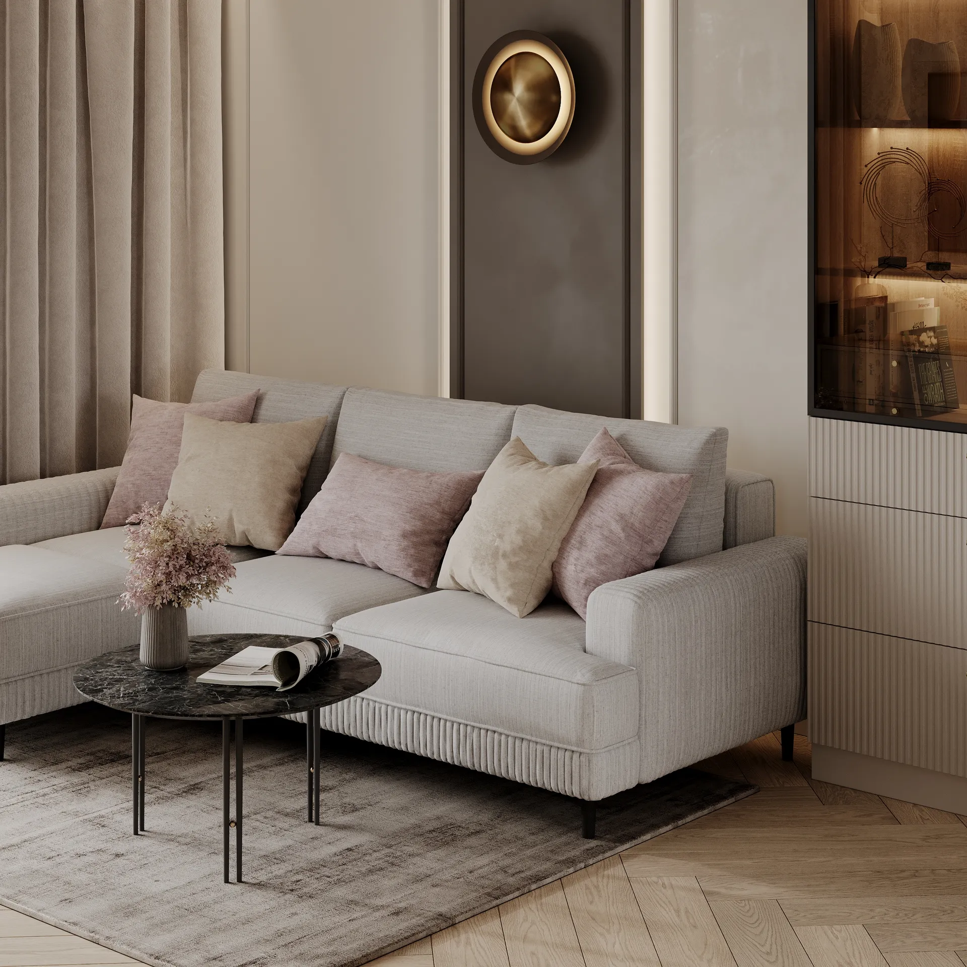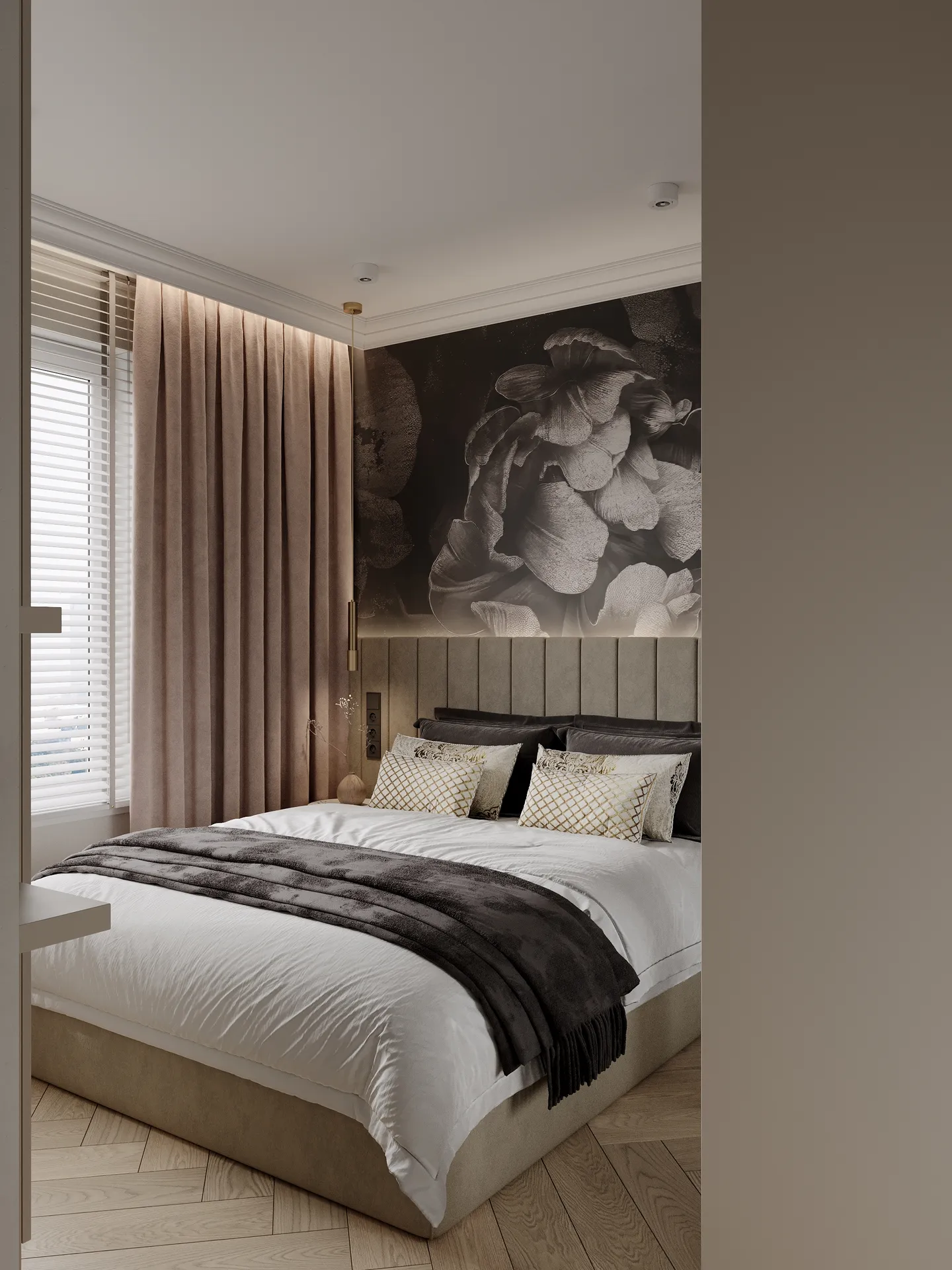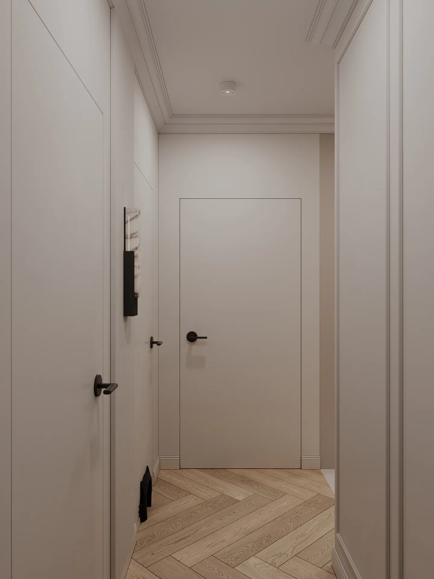 Projekt wnętrza modern classic Warszawa powstał z myślą o młodym małżeństwie z czwórką kotów. Całość utrzymana jest w subtelnych odcieniach beżu, uzupełnionych wyraźnymi, kontrastującymi detalami, które nadają przestrzeni wyrazistego, ale harmonijnego charakteru.